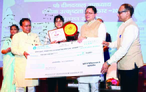 देहरादून। मुख्यमंत्री पुष्कर सिंह धामी ने गुरुवार को नानूरखेड़ा स्थित एससीईआरटी आडिटोरियम में आयोजित पंडित दीनदयाल उपाध्याय शैक्षिक उत्कृष्टता पुरस्कार समारोह में बोर्ड परीक्षाओं में शीर्ष 10 स्थान प्राप्त करने वाले हाईस्कूल और इंटरमीडिएट के 75 मेधावी छात्र-छात्राओं को पुरस्कृत किया। इस मौके पर बोर्ड परीक्षाओं में उत्कृष्ट परिणाम देने वाले विद्यालयों के तीन-तीन प्रधानाचार्यों के साथ ही श्रेष्ठ प्रदर्शन करने वाले शीर्ष 50-50 विद्यालयों के प्रधानाचार्यों को भी सम्मानित किया।