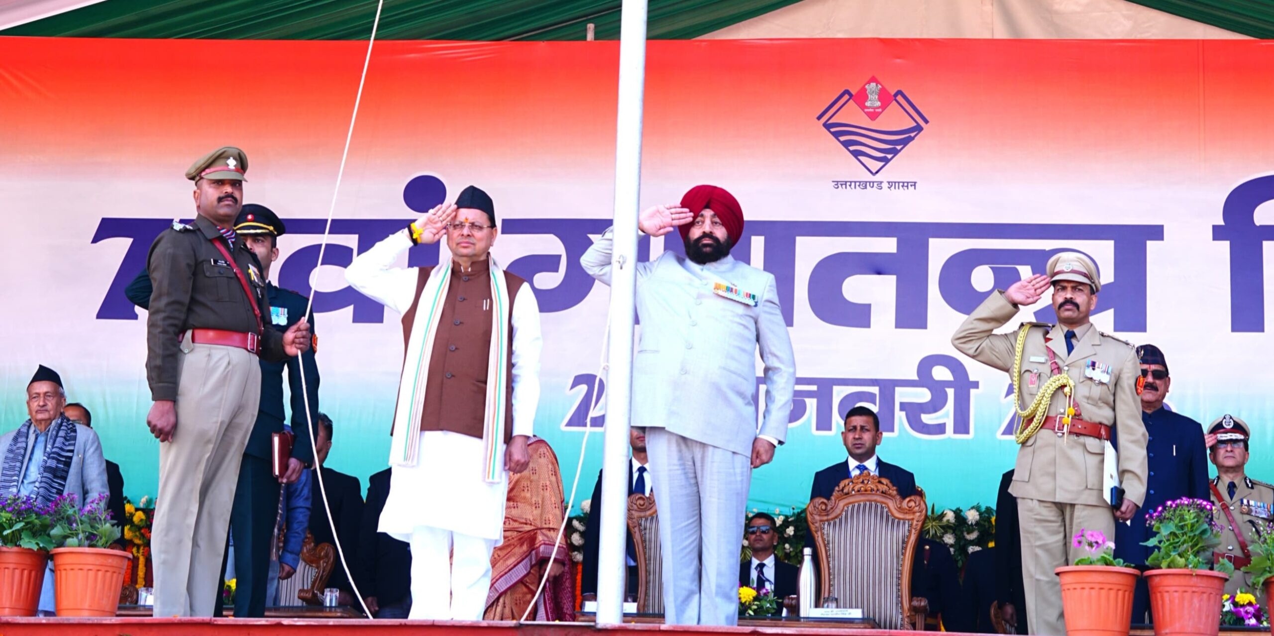देहरादून। गणतंत्र दिवस के अवसर पर राज्यपाल लेफ्टिनेंट जनरल गुरमीत सिंह (से नि) ने सोमवार को परेड ग्राउंड में आयोजित गणतंत्र दिवस के मुख्य समारोह में राष्ट्रीय ध्वज फहराया और भव्य परेड की सलामी ली।